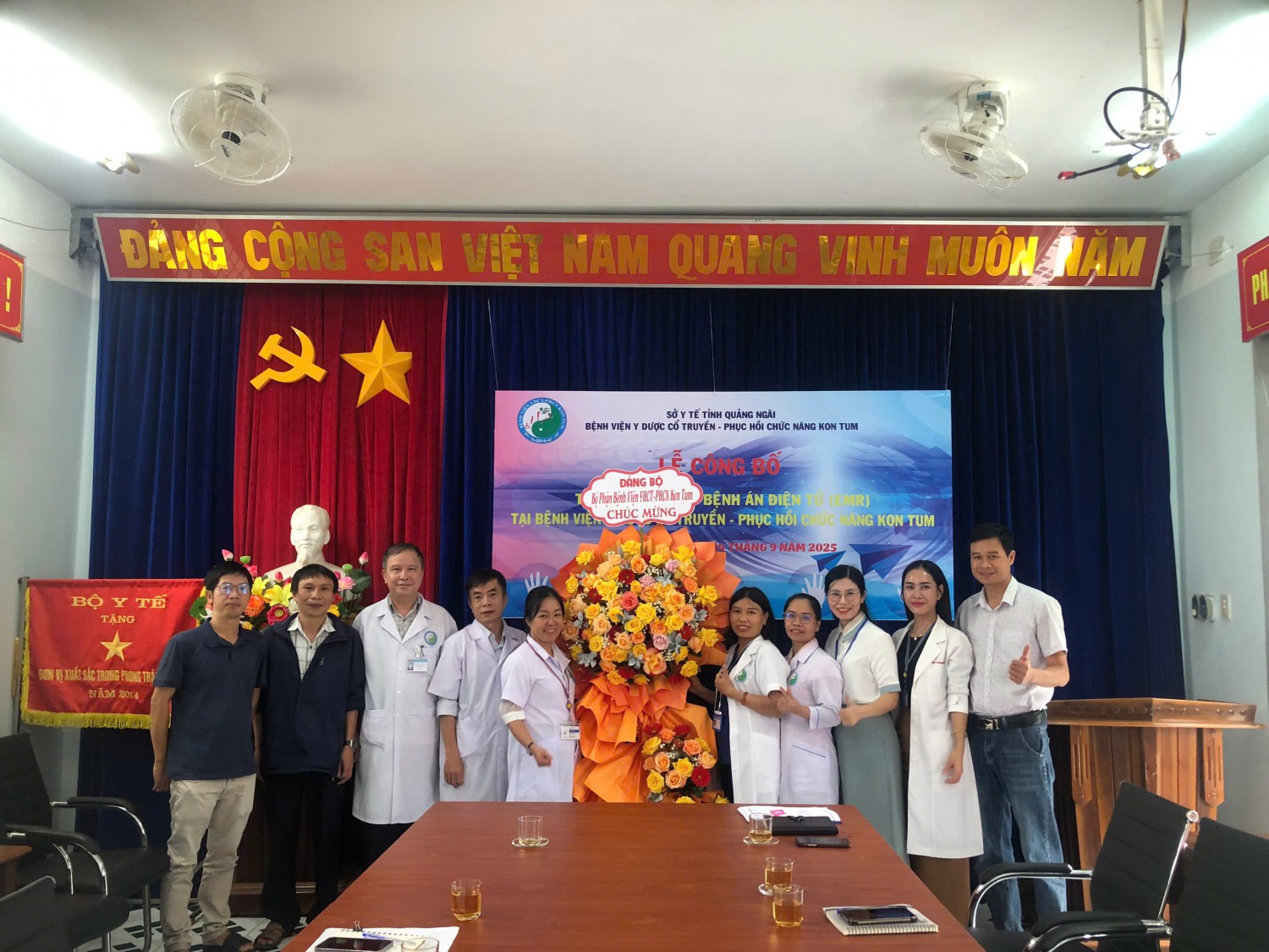Sau một thời gian khẩn trương, gấp rút triển khai thực hiện chiến dịch 45 ngày đêm, đến nay Bệnh viện Y dược cổ truyền - Phục hồi chức năng Kon Tum đã đáp ứng cơ bản các tiêu chí về cơ sở hạ tầng công nghệ thông tin, phần mềm quản lý bệnh án điện tử, bảo mật thông tin y tế và tổ chức triển khai thực hiện. Đặc biệt, Bệnh viện đã phối hợp với nhà cung cấp dịch vụ liên thông với 4 phần mềm trụ cột gồm: HIS, LIS, RIS-PACS và EMR, qua đó khép kín hoàn toàn quy trình từ tiếp đón, quản lý thông tin, tiền sử bệnh, kết quả xét nghiệm, hệ thông lưu trữ và truyền hình ảnh cho bệnh nhân trên môi trường điện tử, thay thế cho hồ sơ, bệnh án giấy. Việc triển khai bệnh án điện tử không chỉ giúp cải cách thủ tục hành chính mà còn rút ngắn thời gian chờ đợi, tăng tính chính xác trong điều trị và theo dõi người bệnh. Đây là giải pháp giúp chuẩn hóa quy trình, tiết kiệm chi phí vận hành, đồng thời nâng cao sự hài lòng của người dân và cũng là bước chuyển mình quan trọng, thể hiện cam kết của Bệnh viện trong việc hiện đại hóa công tác quản lý, phục vụ người bệnh một cách hiệu quả, an toàn và minh bạch hơn. Sau khi thực hiện xong quy trình thẩm định Hồ sơ bệnh án điện tử, được sự thống nhất đồng ý của Hội đồng chuyên môn thẩm định Hồ sơ bệnh án điện tử. Hôm nay Bệnh viện Y dược cổ truyền - Phục hồi chức Kon Tum long trọng tổ chức công bố triển khai hồ sơ bệnh án điện tử (EMR). Tham dự buổi Lễ công bố triển khai hồ sơ bệnh án điện tử, có sự tham gia của: BS CKII Nguyễn Thanh Hà, Bí thư Đảng bộ bộ phận, Giám đốc Bệnh viện Y dược cổ truyền - Phục hồi chức Kon Tum; BS CKI Lâm Văn Lênh, Phó Bí thư Đảng bộ bộ phận, Phó Giám đốc Bệnh viện Y dược cổ truyền - Phục hồi chức Kon Tum; BS CKI Ksor Thu, Đảng ủy viên, Phó Giám đốc Bệnh viện Y dược cổ truyền - Phục hồi chức Kon Tum. Cùng với sự tham dự đông đủ của Trưởng, Phó, Phụ trách, Điều dưỡng trưởng/KTV trưởng các khoa, phòng và toàn thể viên chức của Bệnh viện Y dược cổ truyền - Phục hồi chức Kon Tum . Thực hiện Nghi thức bấm nút công bố triển khai sử dụng hồ sơ bệnh án điện tử với sự tham gia của: BS CKII Nguyễn Thanh Hà, Bí thư Đảng bộ bộ phận, Giám đốc BV YDCT-PHCN Kon Tum; BS CKI Lâm Văn Lênh, Phó Bí thư Đảng bộ bộ phận, Phó Giám đốc BV YDCT-PHCN Kon Tum; BS CKI Ksor Thu, Đảng ủy viên, Phó Giám đốc BV YDCT-PHCN Kon Tum; DS Long Thúy Hạnh, Phó Trưởng phòng, Phụ trách phòng Kế hoạch tổng hợp; BS CKI Phạm Thị Huệ, Phó Trưởng khoa Nội tổng hợp - An dưỡng - Nhi Cho thấy, việc triển khai sử dụng hồ sơ bệnh án điện tử là một bước ngoặt quan trọng, trong thời gian tới chúng ta hy vọng rằng với sự đồng lòng, đoàn kết của tập thể đơn vị sẽ kịp thời xử lý những khó khăn, vướng mắc nhằm sớm thay thế bệnh án giấy hoàn toàn bằng bệnh án điện tử. Quy trình vận hành phải đảm bảo an ninh an toàn hệ thống thông suốt. Với mục tiêu cao nhất bảo đảm sự hài lòng trong công tác chăm sóc, bảo vệ sức khoẻ Nhân dân. Hoà trong không khí phấn khởi và niềm vui chung trong toàn đơn vị, Ban Lãnh đạo xin gửi lời chúc mừng và lời cảm ơn chân thành nhất tới toàn thể viên chức và người lao động trong đơn vị. Trong thời gian vừa qua đã hết sức cố gắng, tận tâm, tận lực, đoàn kết phấn đấu hoàn thành nhiệm vụ chung. Hy vọng và tin tưởng trong thời gian tới, bệnh viện sẽ tiếp tục đoàn kết, nỗ lực phấn đấu để vượt qua khó khăn, hoàn thành tốt nhiệm vụ được giao. Một số hình ảnh: